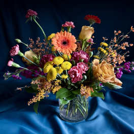 Price: $75.00DESIGNER'S CHOICE, SUNSET SERENADE VASED ARRANGEMENT